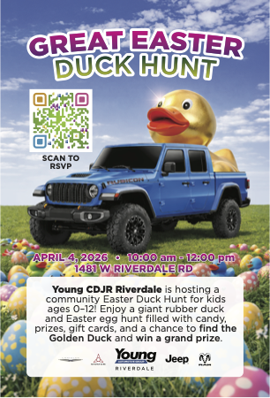 Hey YAG Family, Young Chrysler Dodge Jeep Ram of Riverdale is gearing up to host their first-ever Easter Rubber Duck Hunt on April 4 at 10 a.m., and we’re inviting you all to the party! We’ll be hiding several eggs and rubber ducks throughout the dealership — each containing candy, prizes, coupons and even gift […]